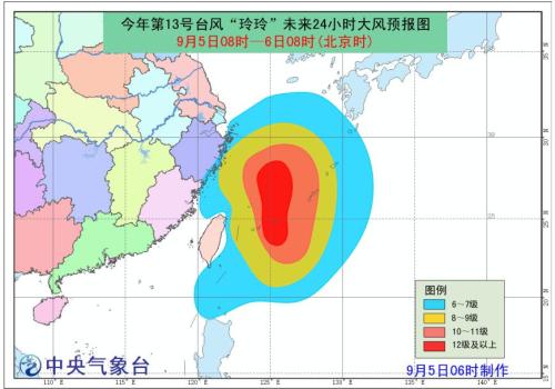 中新網(wǎng)9月5日電 據(jù)中央氣象臺(tái)網(wǎng)消息,今年第13號(hào)臺(tái)風(fēng)“玲玲”今晨加強(qiáng)為強(qiáng)臺(tái)風(fēng)級(jí),8時(shí)其中心位于臺(tái)灣省宜蘭市東偏南365公里的臺(tái)灣以東洋面上,中心附近最大風(fēng)力有15級(jí)(48米/秒)。