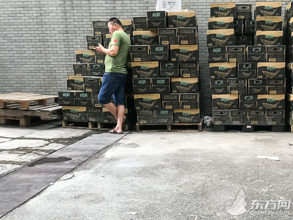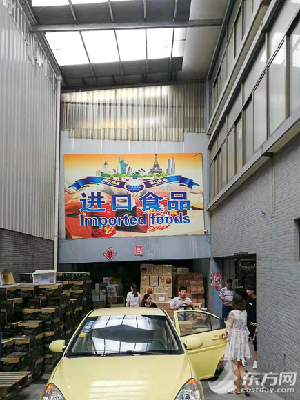 事實上,記者當日前往江橋的批發市場時,發現在周邊的幾條道路上有不少從事進口食品批發的倉庫,有的甚至在沿街的墻上張貼了大型的廣告,招攬客戶。在這些倉庫內,時不時有貨車開進開出,好不熱鬧。
