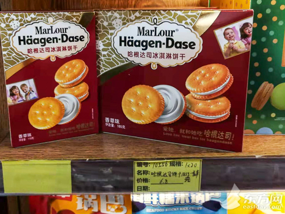 不過記者也發現,店內的商品良莠不齊,一款名為“哈根達司餅干”的商品差點就騙過了記者的眼睛,哈根達斯什么時候出餅干了?可是該商品的包裝風格,包括廣告語,都與正牌的哈根達斯相同。仔細一看,原來商標上存貓膩,知名品牌“哈根達斯”在這里變成了“哈根達司”。事實上,在展廳內有不少商品都是聞所未聞的品牌,消費者在選購時往往會被花哨的外觀所“忽悠”。