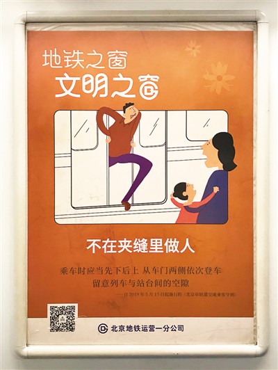 北京地鐵車廂內(nèi)的文明宣傳廣告。本報記者 王晶玥攝