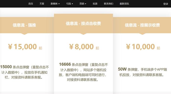 彈窗廣告泛濫的背后是利益的收割,一些彈窗廣告營銷頁面顯示,1萬元就能買到50萬次彈窗廣告。還有更便宜的,有媒體援引彈窗廣告營銷人員的話稱,5000元可買100萬次曝光,平均下來,50元10000次的曝光,可謂是“白菜價”。