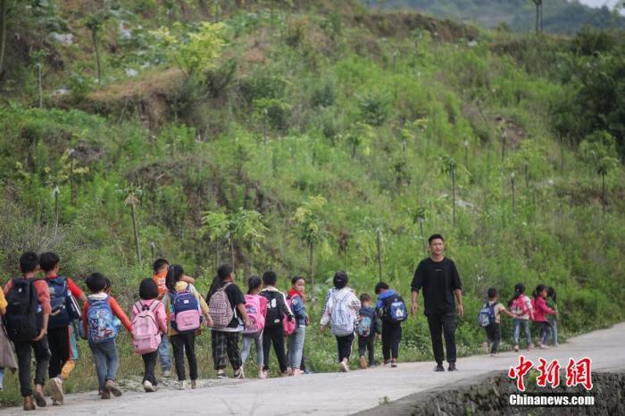 資料圖:一名“90后”鄉(xiāng)村教師組織學(xué)生排隊(duì)上下學(xué)。 中新社記者 瞿宏倫 攝