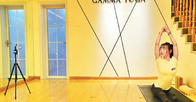 ?位于河北省秦皇島市海港區的一家瑜伽會所內,瑜伽教練正在通過直播的方式為學員講解課程。曹建雄攝(人民視覺)
