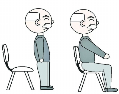 站在椅子前反復(fù)緩慢起立坐下,選擇帶有靠背和扶手的椅子,采用中坐姿勢(shì),落座面積占椅面的2/3。