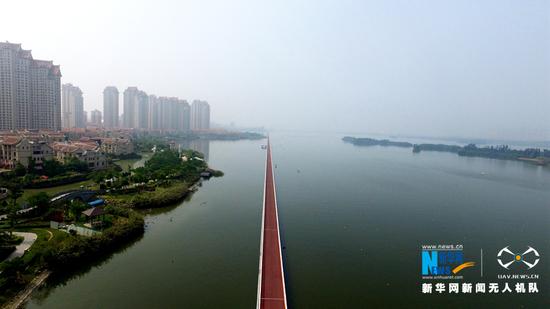這條海上自行車道全長2.6公里,位于廈門市集美區(qū)環(huán)杏林灣,是環(huán)杏林灣自行車道中的海上延展部分。從高空俯瞰,這段橫跨海灣的騎行步道,猶如一條鑲嵌在碧波中的鮮紅色飄帶。