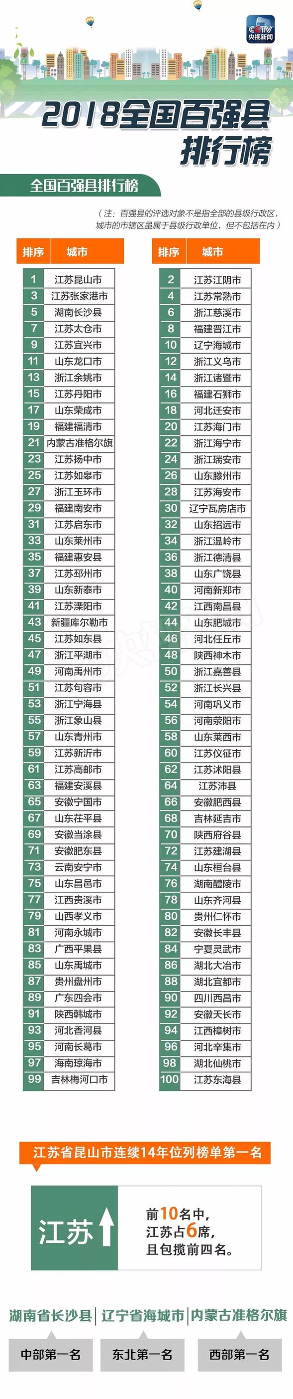 2018全國百強縣排行榜 看看你家鄉上榜了嗎?