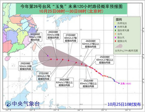 臺風“玉兔”未來路徑概率預報圖(圖片來源:中央氣象臺)
