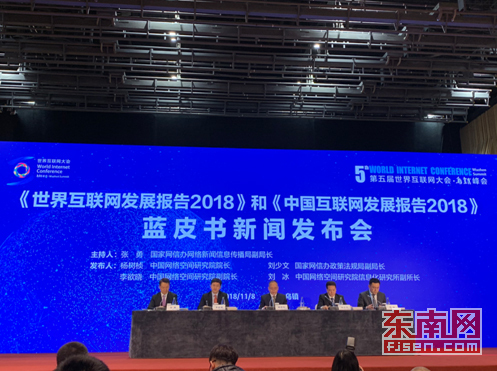 東南網11月8日訊(本網記者 陳勍)今天上午,第五屆世界互聯網大會在烏鎮發布《世界互聯網發展報告2018》和《中國互聯網發展報告2018》兩份藍皮書。