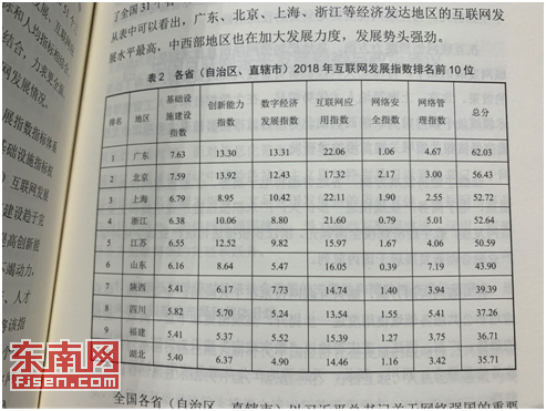 2018各省(自治區、直轄市)互聯網發展指數排名表(東南網記者 陳勍 攝)