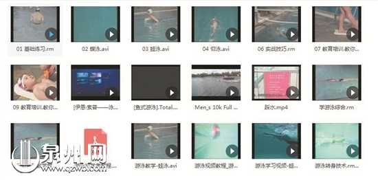 線上游泳課程的教學視頻,只是網上能搜索到的普通游泳視頻。