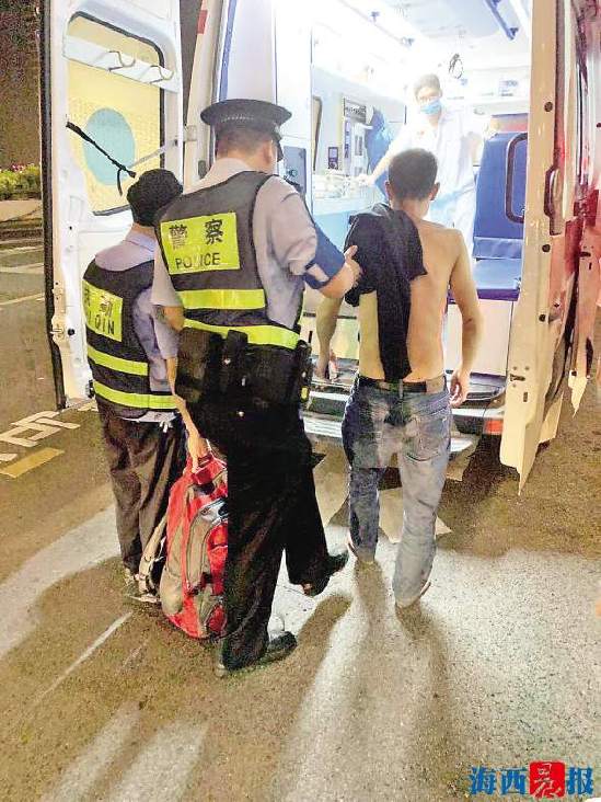 6月28日23時許,夜已深,廈門北站漸漸安靜下來。北站派出所副所長王鎮偉、民警謝洪春巡邏至北出站口時,發現了一名骨瘦如柴的男子赤裸著上身平躺在地板上,衣服、鞋子、行李散落一地。