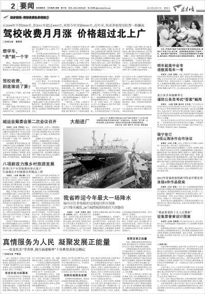 2013年3月27日《駕培收費(fèi)亂象調(diào)查系列之上——駕校收費(fèi)月月漲 價(jià)格超過北上廣》