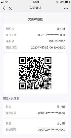 5、預約成功后,將在祭掃預約首頁生成入園二維碼,請在入園時出示。同時進入頁面也會顯示已預約的信息。