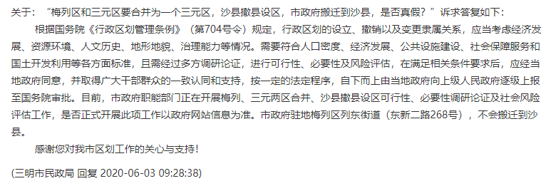 三明市政府搬遷到沙縣?梅列和三元要合并?權威回應來了!