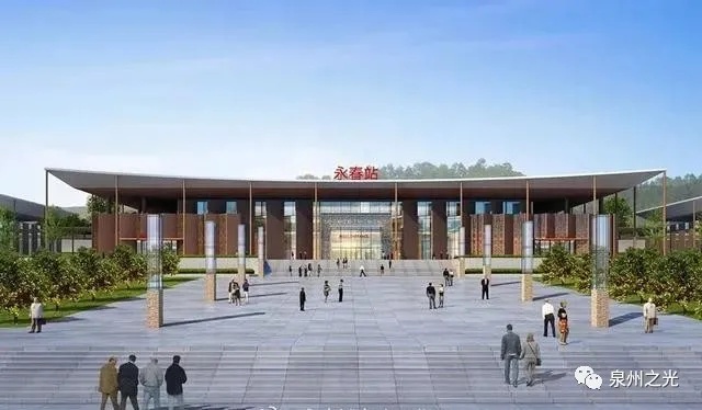 興泉鐵路永春站為線側下式中型站房,站房建筑面積6916平方米,車場設計規模為2臺4線,設立站臺兩座。站房設計吸收了永春本地元素和傳統建筑元素,將閩南風格和現代風格有機融合,建成以后有望成為永春又一地標建筑。