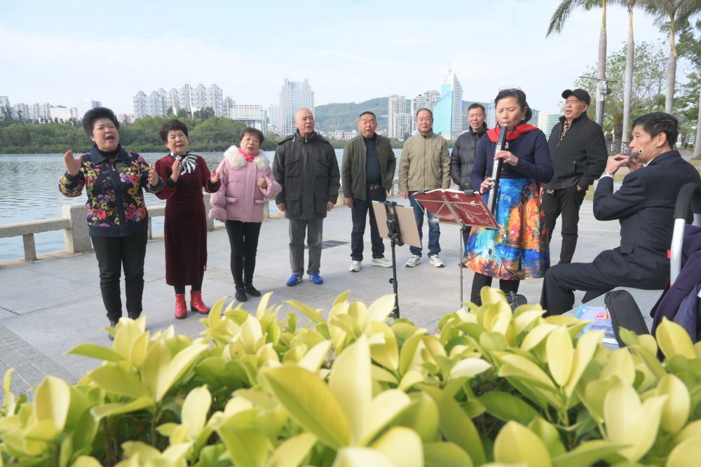 ??2024年1月24日,市民在位于廈門筼筜湖邊的南湖公園開展娛樂活動。新華社記者 林善傳 攝