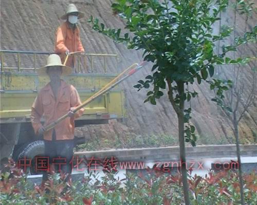 縣公路局養護工人在噴灑殺蟲劑殺蟲