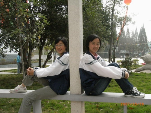 丹妮(左一)和同學背靠背,看!我們也是品牌!