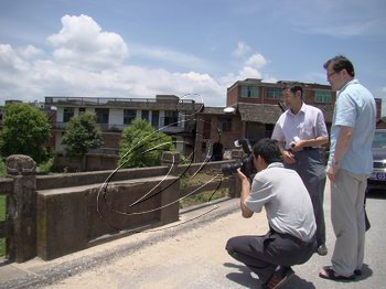 攝影愛好者在石壁鎮紅軍橋上拍攝(張麗勍/攝)