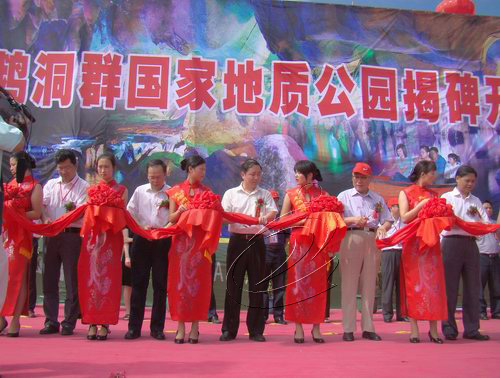 省旅游局長郭恒明,中國地質(zhì)科學(xué)研究院研究員陳安澤,省國土資源廳原廳長林方磊,三明市委常委、統(tǒng)戰(zhàn)部長李家榮,副市長林俊德為開園剪彩揭碑。省、市、縣有關(guān)部門領(lǐng)導(dǎo)、專家、代表500多人參加了園典禮,“兩院”院士張宗祜等發(fā)來了賀電、賀信。