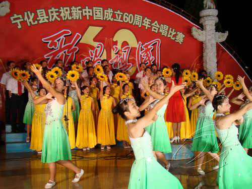“祝福你,我的祖國,我把滿腔赤誠獻(xiàn)給你……”, 924日晚,一曲氣勢磅礴的大合唱《祝福祖國》,拉開了寧化縣慶祝建國六十周年“歌唱祖國”合唱比賽的帷幕。賽歌臺上鮮艷的五星紅旗背景分外耀眼,一首首歷久彌新的紅歌表達(dá)了35萬寧化老區(qū)人民心中對祖國的美好祝愿。