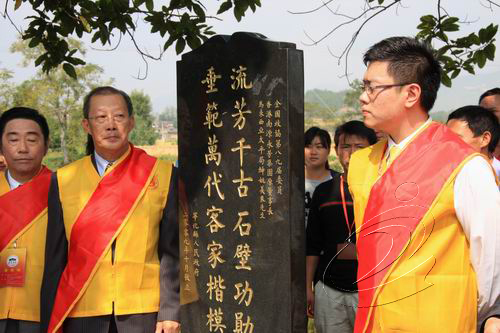姚美良先生是全國政協(xié)原委員、香港南源永芳集團(tuán)公司原董事長、馬來西亞太平局紳。1995年首次來到石壁,開創(chuàng)了海外客家后裔石壁祖地尋根祭祖的先河,在他的大力推動(dòng)下,首屆世界客屬石壁祖地祭祖大典成功舉行。從1995年到1998年,他先后9次來到石壁,祖團(tuán)參加祭祖大典并連續(xù)4年擔(dān)任主祭,親自策劃、指導(dǎo)一年一度祭祖大典的籌備工作。他和兄長姚森良捐助人民幣100多萬元,用于修建、完善 “客家之路”、文博閣、陳列廳、碑林、碑亭等客家公祠相關(guān)設(shè)施。1999年,姚美良英年早逝。今年,姚美良先生逝世10周年,寧化縣人民政府特為姚美良先生立“流芳千古石壁功勛,垂范萬代客家楷?!惫Φ卤员磉_(dá)祖地人民和世界客屬對(duì)姚美良先生永久的頌揚(yáng)與紀(jì)念,激勵(lì)世界客屬學(xué)習(xí)發(fā)揚(yáng)姚美良先生優(yōu)秀品格和高尚精神,共同推進(jìn)客家事業(yè)更加繁榮昌盛。