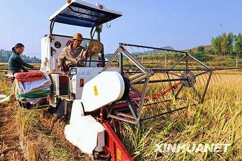 10月17日,福建省寧化縣中沙鄉(xiāng)農(nóng)民在收割稻谷。