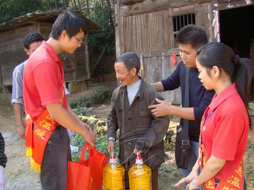 ?? 1021,中國寧化在線“社區(qū)沙龍”中“翠江水庫”版主南山下發(fā)出 “本論壇計劃在重陽節(jié)開展慰問貧困老人活動,歡迎網(wǎng)友報名”的帖子。帖子一露面,立即得到網(wǎng)民的響應(yīng)。山上老樹根、龍門橋、心蘭、單語語、家住半山腰、用戶名、我從山中來、伊拉克、上善若水、英子、aa226311htzmw、廖廖、銀赤、西門吹血、雪絨花等網(wǎng)友紛紛留言,表示愿意捐錢捐物,給農(nóng)村一些貧困老人送溫暖。至1025,網(wǎng)友解囊捐資2400元,其中“山上老樹根”一人就捐款1000元。網(wǎng)友“雪絨花”與永輝超市聯(lián)系后,該超市主動捐助“金龍魚”5升食用油60桶,加上網(wǎng)友的捐贈,共募集“金龍魚”5升食用油102桶。