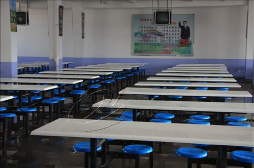 ??? 2007年下半年開始,占地2000多平方米的學校新食堂正式投入使用。食堂寬敞明亮,衛生整潔,近百套塑鋼桌凳,可同時容納700多人就餐。在老師的組織下,學生列隊買飯,按班就餐,不擁擠,不吵鬧,秩序井然。餐廳安裝了電視,學生可以一邊用膳,一邊欣賞電視節目。