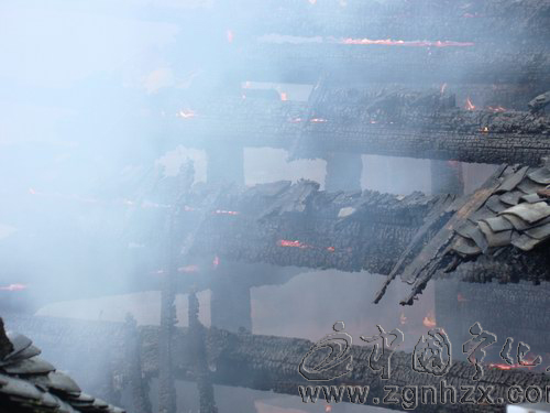 記者在起火的民宅看到,屋內的家具已經熏黑,現場狼藉一片,仍有大量白煙冒出,被燒焦的橫梁三三兩兩的倒了一地,依然可以聞到濃烈的焦味。