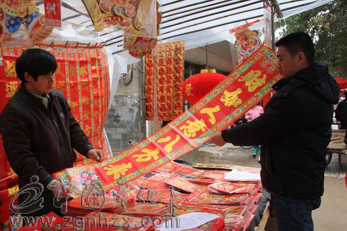 ??? “生意一直都不錯,特別是臨近年關,生意更好?!钡曛鲝埨习甯嬖V記者。看來,充滿著中國傳統色彩的吉祥物掛件、貼畫、春聯等商品永遠都不過時,仍然是市民們歡度春節的必購物品。
