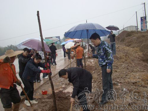 313,盡管春雨連綿,可寧化縣石壁鎮(zhèn)陂下村道路兩旁卻是一派熱火朝天的景象。由“中國(guó)寧化在線(xiàn)”組織的30余名網(wǎng)友與寧化公路分局工人一起,運(yùn)苗栽樹(shù),揮鍬培土,種下一排排香樟樹(shù),為寧化“綠色長(zhǎng)廊公路”再添新綠。