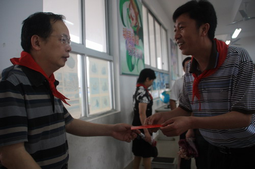 上午8點30分,縣委書記陳忠杰,縣委常委、縣委辦主任劉世繁和縣教育局、縣婦聯的負責同志來到寧師附小。校園里響起了喜慶的鑼鼓,等候在一旁的少先隊員紛紛上前給領導們系上紅領巾。陳忠杰詳細了解了學校的硬件設施、文化建設、校園安全保衛等情況,不時提出意見和建議,并送上了慰問金。他看到孩子們個個歡天喜地,也忍不住走進一年級(3)班,一起參加“六一”游園活動。在該班,他還代表縣委、縣政府,給孩子們送上了節日的祝福。