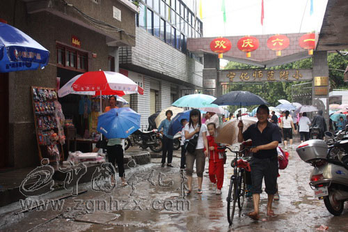 18日中午2時10分,當(dāng)記者來到寧師附小校門前時,許多學(xué)生在家長的陪同下,正離開校園。學(xué)校王校長告訴記者,當(dāng)天中午,學(xué)校派人到翠江邊查看水情,發(fā)現(xiàn)洪水漲勢很快,為了學(xué)生安全,校方立即通知家長來接孩子。中午2點半,到校學(xué)生全部被家長接走。
