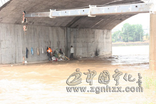 10時47分,男子的弟弟弟媳婦等數(shù)人趕到。洪水開始漫入施救人員所在的中環(huán)路第一個橋洞的路面,必須趕快施救。弟弟焦急喊話,但男子抽著煙不理睬。經(jīng)過緊急磋商,指揮人員決定用吊車把弟弟吊入橋洞,進(jìn)行勸說,伺機(jī)搶奪柴刀。同時,沖鋒舟在下游待命,以防不測。