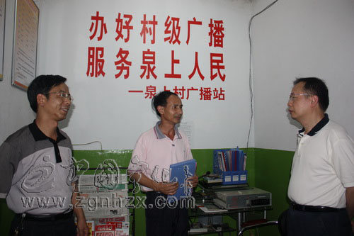 陳忠杰一行還來到泉上鎮(zhèn)泉上村,了解該村168基層黨建情況。當(dāng)了解到6.18洪災(zāi)期間,該村黨支部發(fā)揮堡壘作用,奮力抗洪搶險(xiǎn),安全轉(zhuǎn)移1500多名村民時(shí),陳忠杰稱贊他們做得好。泉上村是個(gè)擁有20個(gè)村民小組3000多人口的大村,村民居住比較分散。該村利用村廣播站,每天半小時(shí)播出政策法規(guī)宣傳、病蟲害防治、防火防災(zāi)、農(nóng)業(yè)技術(shù)和生產(chǎn)生活常識等方面內(nèi)容,這次6.18洪災(zāi),廣播站承擔(dān)起村里“第一主流媒體”的責(zé)任,將轉(zhuǎn)移消息第一時(shí)間傳達(dá)到各組各戶,使村民安全轉(zhuǎn)移。陳忠杰說,流行于上世紀(jì)80年代的廣播重回鄉(xiāng)村,及時(shí)通報(bào)村里的最新動(dòng)態(tài)和上面的新政策,提高了群眾對政策的知曉率,加強(qiáng)了輿論監(jiān)督,這一宣傳機(jī)制,值得推廣。