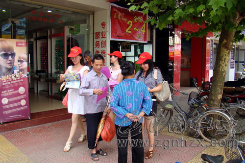 下午3點半,08批次大學生志愿者攜同09批次大學生志愿者一行9人,頭戴紅色志愿帽,頂著烈日,分赴北大街和南大街,走進商店、小吃店、雜貨攤點,向店主、攤主、過往行人宣傳預防傳染病知識。“這東西有用,我家前段時間剛浸了水,拿回家讓兒子看看。”家住中山街的羅奶奶說。
