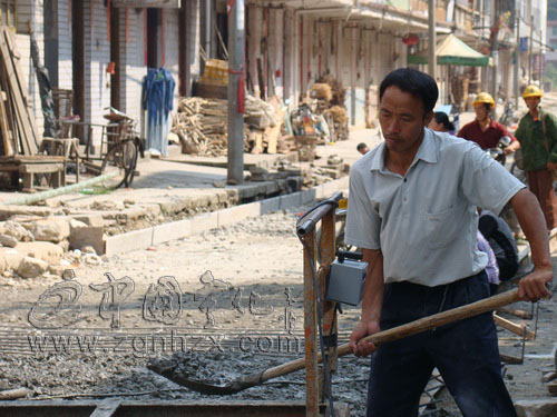 據該鄉老街沿街住戶介紹,該路段很早就建成了,近年來,由于經過的車輛不斷增多,加之風吹日曬,路面嚴重老化。今年,該鄉把老街改建作為為民辦實事和新農村建設的項目之一,及時啟動了老街改造工程,對路面進行硬化,并鋪設排污管道。