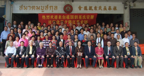 ??? 5日上午,訪問團(tuán)抵達(dá)泰國首都曼谷,,受到了巫庭光理事長夫婦和眾多泰國宗親的熱情接待。在歡迎座談會(huì)上,巫庭光致詞,他說,寧化是舉世公認(rèn)的客家祖地,也是巫氏始祖巫羅俊公的誕生地,泰國巫氏都是巫羅俊公的后裔,與寧化源遠(yuǎn)流長,血脈相連。巫瑞才團(tuán)長向泰國宗親介紹了寧化經(jīng)濟(jì)發(fā)展暨客家祖地建設(shè)概況,匯報(bào)了海內(nèi)外巫氏宗親聯(lián)誼總會(huì)的會(huì)務(wù)活動(dòng)進(jìn)展,他誠摯邀請(qǐng)?zhí)﹪谟H2012年回到寧化,參加巫羅俊誕辰1430周年慶典暨第二屆海內(nèi)外巫氏文化節(jié)。