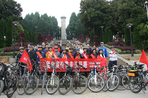 ???? 4月9日,由寧化縣地稅局、中國寧化在線聯合組織的“稅收宣傳志愿者重走紅軍路”活動啟動,30余位志愿者和寧化地稅工作人員,沿著當年紅軍長征集結出發的線路,用自行車騎行的方式,沿途開展稅收宣傳。