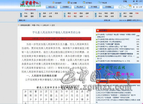414,寧化縣人民法院新一輪人民陪審員的報名選拔工作正式展開,選任公告已在中國寧化在線網站(www.renjv.com)公告公示專欄上發布。繼去年公開招募25名后,縣法院今年面向尚未配備陪審員的城南、曹坊、治平、石壁、淮土等12個鄉鎮再招12名,報名截至58