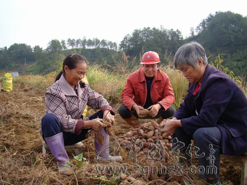 檳榔芋種植一直是安遠鄉20多個村的重點產業。每年種植面積都有3000多畝。但由于分戶種植,技術水平參差不齊,賣難問題也比較突出,一度曾影響農民的種植積極性。于是,2000年10月,溫建英就組建起安遠翠北檳榔芋專業合作社,采取統一供應種苗、分片集中培訓、統一收購等辦法讓檳榔芋在安遠各村得以鞏固和發展。為培育種植大戶,他還曾將那些勞力缺乏的老年戶、外出務工人員戶的土地通過流轉的方式,集中到有能力種植的農戶手中,讓他們規模化種植。“今年合作社銷售了1500多畝、50多萬公斤的檳榔芋,都銷往廣東湛江、深圳等地,近800多農戶的芋頭,由于是統一銷售,沒有出現競相壓價現象,種植戶的收入反而每畝增加了400多元。”溫建英掐指算著說。