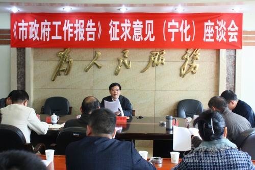 ??? 12月7日,三明市委常委、常務副市長朱昌賢帶領有關負責人,到寧化召開市政府工作報告征求意見座談會,廣泛聽取意見和建議。縣領導楊勝、楊興忠、劉小帆,部分在寧化的市人大代表、市政協委員參加了會議。