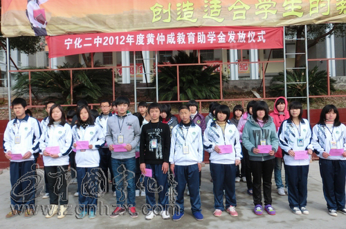 1月15日,寧化二中舉行2012年度黃仲咸獎學金頒獎儀式。31位品學兼優的高中同學每人獲得1000元資助。