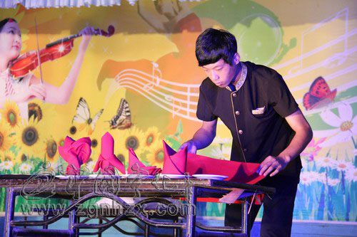 學校還舉行了“體驗中職生活”文藝演出。該校學生用一個個精彩的節目,向前來參觀的學生展示了自己的學習成果。美妝、酒店專業技能展示節目中,學生們嫻熟的中西餐擺臺等表演,讓大家領略到了中職生的風采??彀鍟吨袊栉幕?、歌曲聯唱、舞蹈《扇花飛舞》等節目,讓現場學生感受到他們陽光、快樂。書法、舞蹈技能展示則展現了中職生扎實的基本功。