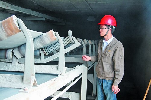 ??? 2006年7月,陽貴華在清流縣技校機電一體化專業畢業,因成績優秀被行洛坑鎢礦公司選中,成為這家公司的員工?!拔覀儼嗟穆氊熅褪前?0公分大的鎢礦石,破碎成1.2公分小的鎢礦石。礦石如果沒有破碎成這樣標準的話,就會嚴重影響到下一道工序棒磨車間的正常運轉。”陽貴華瘦高個,戴著安全帽和口罩,塞著耳塞。。