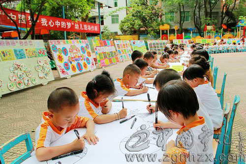??? “讓幼兒用色彩鮮明的繪畫來表達對祖國的熱愛,對未來的憧憬。引導全園幼兒把個人成長與祖國未來發展聯系在一起,樹立遠大理想,從小立志為實現‘中國夢’而奮斗。”園長王寧榕道出了舉辦本次活動的初衷。據了解,今年六一節該園還將舉辦“圖書義賣”、“六一文藝匯演”等系列活動。(羅 鳴? 顏 琳)