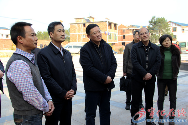 袁毅(中)陳炎標(biāo)(左二)在淮土鎮(zhèn)禾坑村調(diào)研精準(zhǔn)扶貧和基層黨建工作