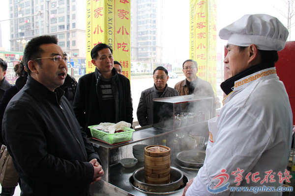 曹洪民了解客家小吃“創(chuàng)業(yè)培育”扶貧戶王重文的小吃店經(jīng)營情況。?