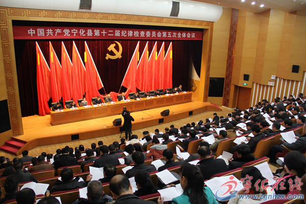??? 2月11日,中共寧化縣第十二屆紀律檢查委員會第五次全體會議在世界客屬文化交流中心學術報告廳舉行。會議深入學習貫徹黨的十八屆三中、四中全會精神,按照中央紀委五次全會、省紀委九屆六次全會、市紀委八屆六次全會和縣委十二屆七次全會的部署,回顧總結2014年黨風廉政建設和反腐敗工作,研究部署2015年工作任務。